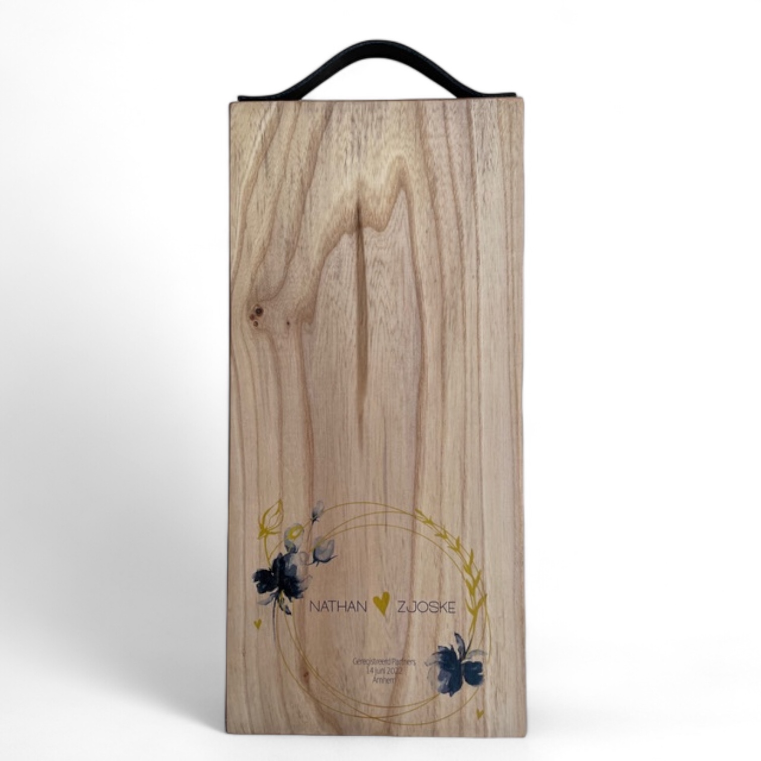 Wat onze borrelplanken echt te gek maakt, is dat je ze kunt bedrukken en graveren. Een borrelplank met je eigen bedrukking of gravering is nog eens een stoer en persoonlijk cadeau. Met onze technieken drukken we scherpe, gedetailleerde designs op de planken. Of als je het subtieler wilt, kunnen we ook een tekst, logo of ontwerp graveren voor die mooie, duurzame, tastbare personal touch.