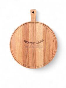 Kies voor een borrelplank met een naam, datum, logo of korte boodschap. Een mooi, duurzaam geschenk dat mensen echt gebruiken en bewaren.